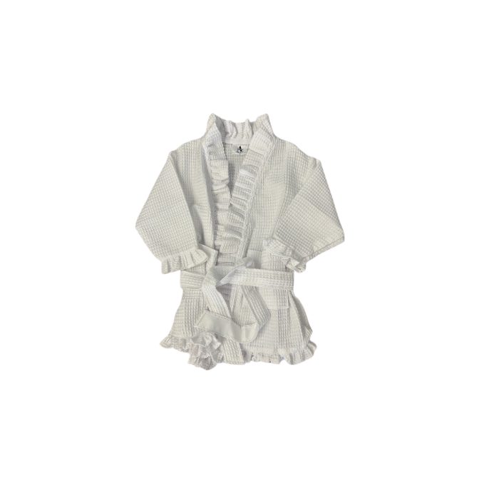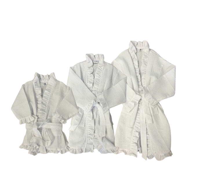 Get your little one ready for a day of pampering in our Kids White Ruffle Robe! Make her feel like a girly girl with the playful ruffle design. You can even pair with our matching adult robe for the ultimate bonding experience! Add a monogram for a personalized touch.
