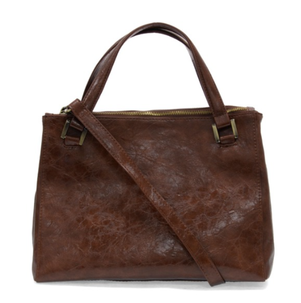 This is the fashionable, modern bag you need to get organized! Three separate zipper compartments plus two open compartments will help you store everything you could need daily. Carry this beautiful satchel tote crafted in our new distressed vegan leather by the handles or use the removable shoulder strap to wear as a crossbody.